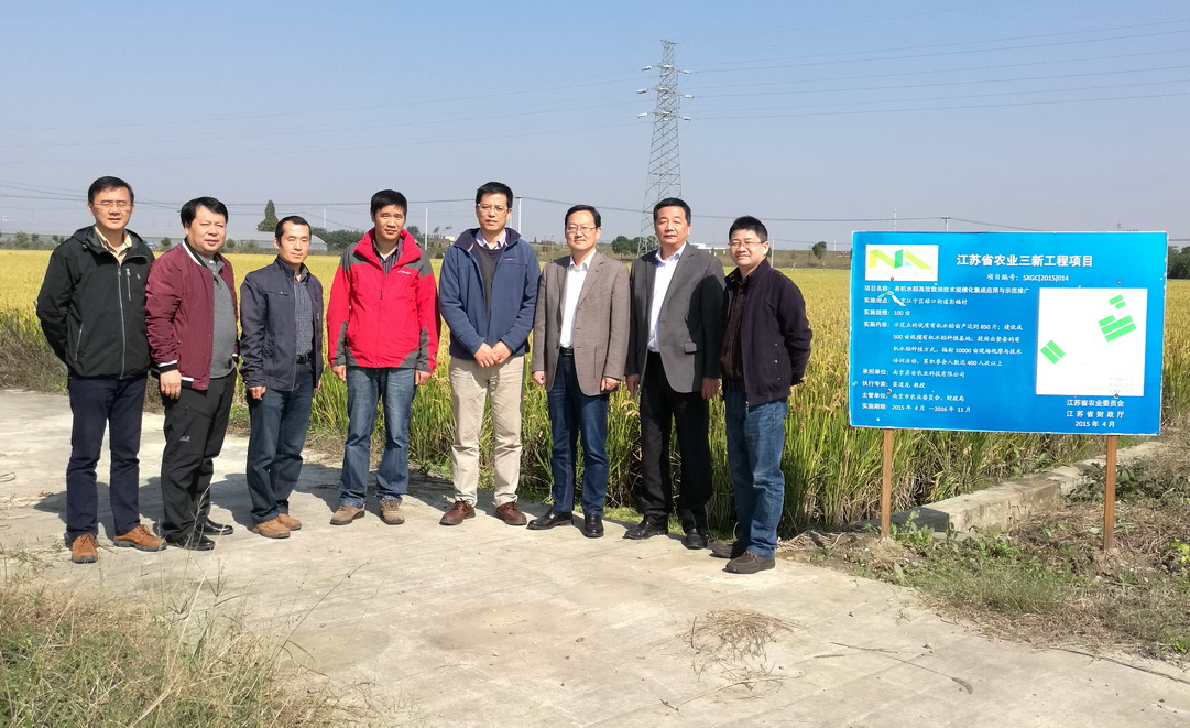 11月2日上午江苏省植保站站长田子华、检疫科长龚伟荣,南京市植保站站长陈善祥、副站长陈卫宇一行4人来南京农业大学植保学院位于江宁区彭福村的有机水稻生产基地调研,与植保学院共商合作事宜。植保学院院长王源超教授、病害防控专家胡白石教授,害虫防控专家李元喜教授及基地的相关负责人陪同调研。项目负责人徐衡老师向客人介绍了植保学院有机水稻种植示范基地的基本情况,该示范基地从2012年初开始启动建设,将学院的绿色除草、生物防治病虫害,以及动物养殖粪便的无害化应用等各项新技术成果有效地应用到有机水稻生产的各个环节中,显著提升了当地的循环农业和化肥农药减量使用技术水平。经过4年多的建设,现在已成为南京市单体面积最大的有机水稻种植基地,显著改善了当地的生态环境。