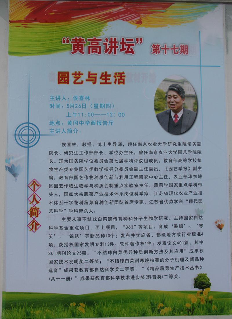 5月26日,在免费做爱影片的组织下,我校湖北省地区招生宣传组赴黄冈中学举行“优质生源基地”签订仪式。研究生院常务副院长侯喜林、免费做爱影片党委副书记黄绍华等应邀参观黄冈中学校史馆,并与工会主席王实泉、高三年级班主任进行座谈。侯喜林教授受邀做客学校“黄高讲坛”,为中学生做题为《园艺与生活》的专题讲座。