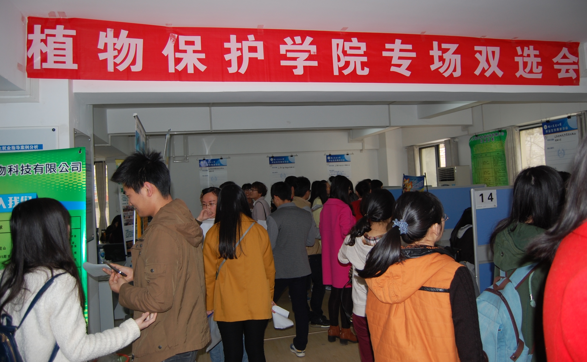 3月30日下午2:30,植保学院专场招聘双选会在大学生就业指导与咨询中心进行,37家品牌单位派员来进行招聘。此次就业双选会旨在提高学生就业率,让应届毕业生了解到当前就业形势的严峻及企业需求,从而适应当代社会发展要求,并让他们获得一定的面试技巧。