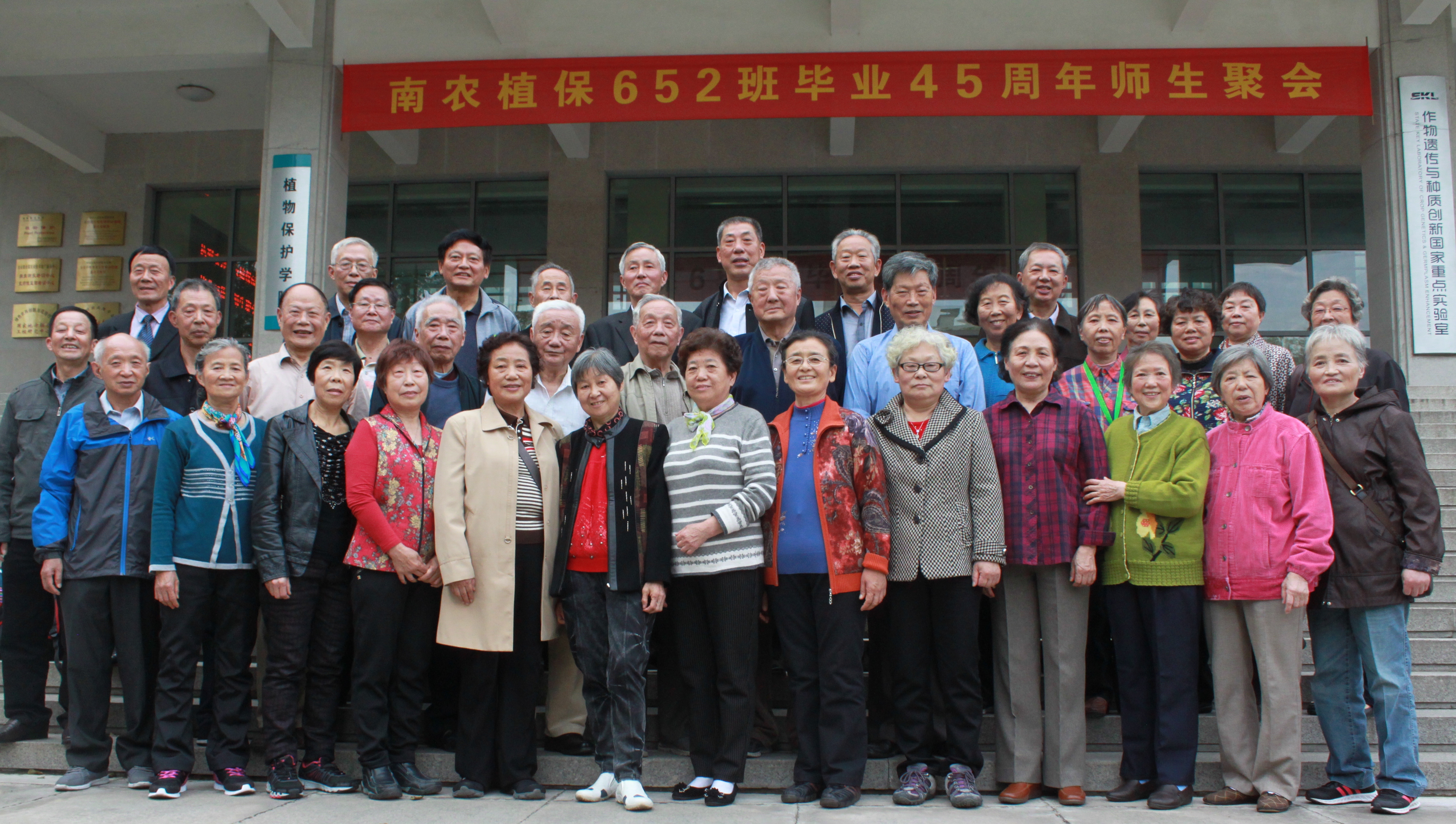 11月6日下午,南京农业大学植物保护专业65(2)班毕业四十五周年师生聚会在南京农业大学理科楼C305成功举行。植保学院程遐年、叶钟音、王荫长等11位退休老教师,65(2)班史宗振、曹必成等28位毕业生和植保学院副院长高学文参加了此次聚会,会议由史宗振主持。