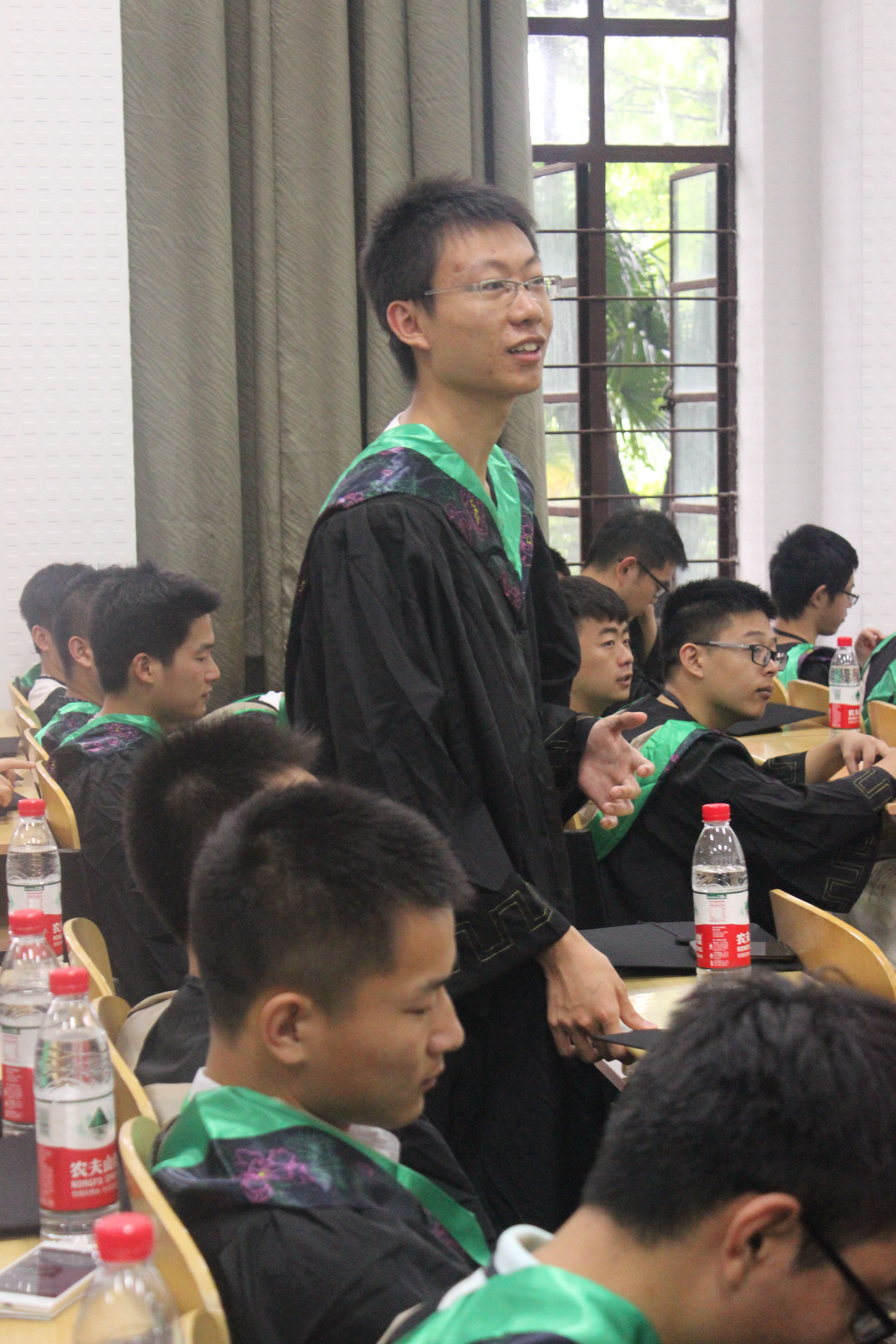 “有梦想,有热情,有毅力,有担当”是刘泽文教授送给毕业生的“四有”箴言,再配以“三多”、“三少”共24个字留给毕业生的是如何在今后科研中披荆斩棘;洪晓月教授反复强调毕业走出南农后,一定要以南农为骄傲;“态度决定一切”,窦道龙教授告诉毕业生成功在于态度,好的态度带你一路前行;李红梅教授则坚信足够努力和老实的品质能给自己带来意想不到的惊喜与收获;“大学学什么”是113班班主任钱国良给毕业生解答的第一个问题,“有节制的放纵”是他对毕业生现状的忠告,他更同大家分析了步入社会后会遇到的各种处境,为毕业生打好预防针。
