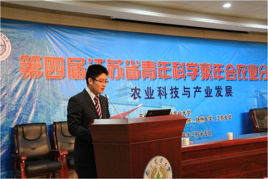 12月15日上午,第四届江苏省青年科学家年会——“农业科技与产业发展”分论坛在南京农业大学金陵研究院会议报告厅成功举行。此次分论坛由南京农业大学主办,江苏省农科院、扬州大学、江苏大学共同承办,并得到了江苏省科协、江苏省农业委员会的大力支持。南京农业大学戴建军副校长、江苏省农业科学院余文贵副院长,江苏省农业科学院科研处黄俊处长,扬州大学杨巧林处长,江苏大学学科办主任邹小波教授,国务院特贴专家扬州大学王金玉教授,国家杰出青年基金获得者南京农业大学王源超教授,南京农业大学农业昆虫与害虫防治系副主任刘泽文教授出席并参加了本次分论坛,会议由南京农业大学朱世桂处长主持。
