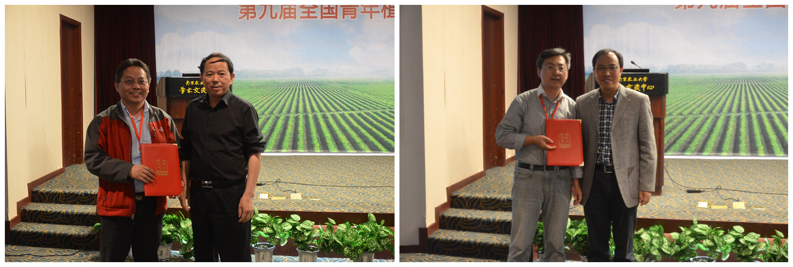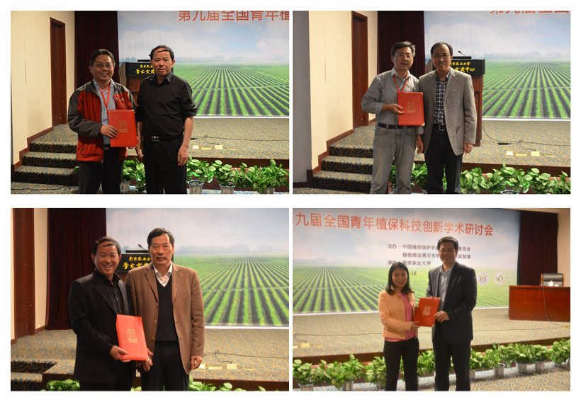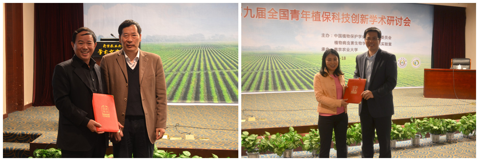 学术研讨会邀请了五位专家作大会特邀报告。中国农业科学院植物保护研究所万方浩研究员引用王国维的读书三境界,从执行——创新——制导三个方面详细介绍了科学家成长三步曲。全国农业技术推广服务中心的姜玉英副处长使用大量详实的科研数据和试验素材做了关于我国农作物病虫害预测预报的探索与实践的报告。中国农业科学院植物保护研究所的张永军研究院、中国农业大学孙文献教授,中国科学院动物研究所的魏佳宁研究员结合自己的工作分别从昆虫与寄主植物化学通讯行为调控,通过比较与功能基因组学揭示稻曲菌花器侵染的生物学特点,植物激素调控植物防御的机制作了报告。随后来自福建农林大学、南京农业大学的四位青年学者分别作了水稻病毒与介体昆虫的互作关系、产酶溶杆菌DSF信号途径调控抗菌物质HSAF生物合成的研究进展、棉铃虫Bt抗性检测及钙粘蛋白受体在Bt抗性中的作用、噬菌体展示竞争物在免疫分析中的应用及其作用方式的研究报告,青委会为每位作报告者颁发了证书。
