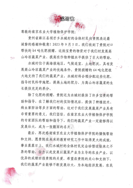 自2013年以来,植保学院党委在“南农麻江10+10行动”框架的指导下,不断深化与麻江县坝芒乡水城村的对口帮扶工作。通过党建共建、产业指导、人才培训、消费和综合帮扶等举措,为帮扶对象解决了实际困难,为水城村党支部被党中央、国务院评为“全国脱贫攻坚先进集体”提供了有力支撑。